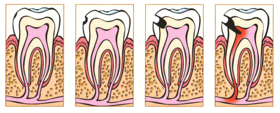 Если вовремя не лечить зуб, пораженный кариесом, происходит дальнейшее разрушение, появляются воспалительные изменения в сосудисто-нервном пучке (пульпе), развивается пульпит.